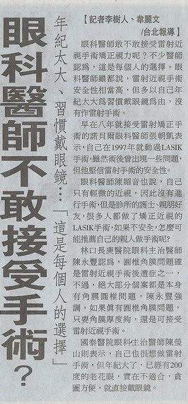 眼科醫師不敢接受手術 聯合晚報 2006-08-23