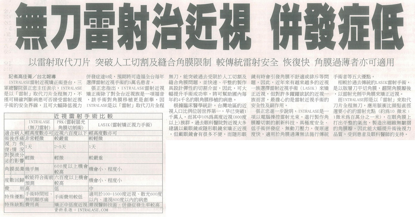 無刀雷射治近視併發症低