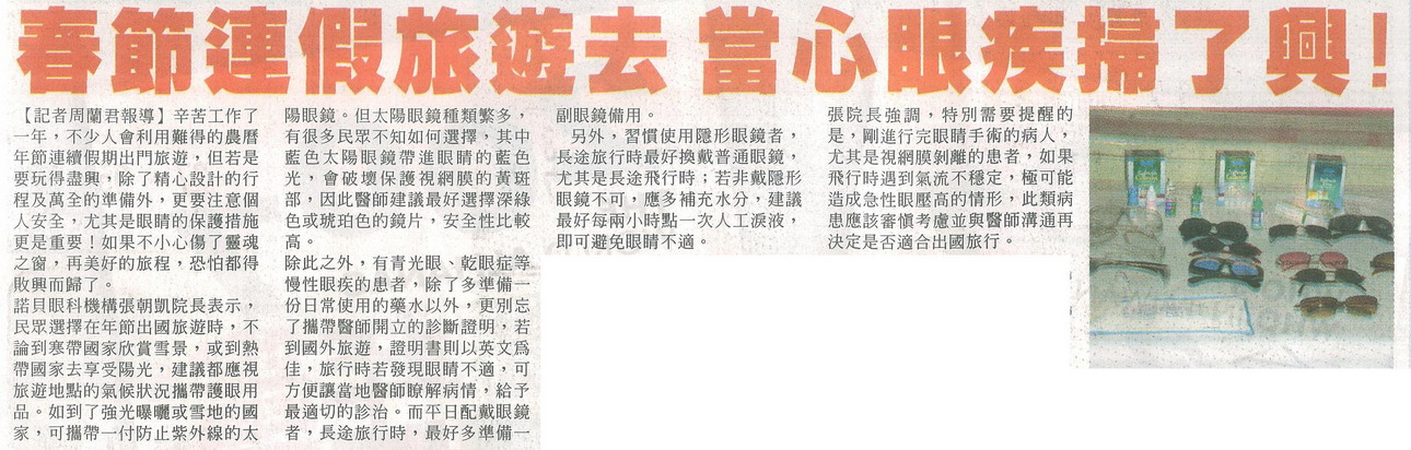 春節連假旅遊去當心眼疾掃了興