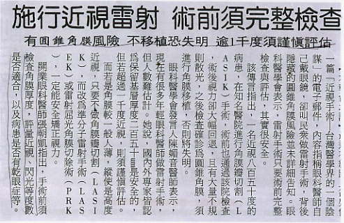 施行近視雷射 術前需完整檢查