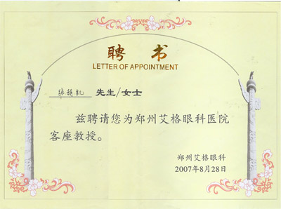 鄭州艾格眼科醫院客座教授