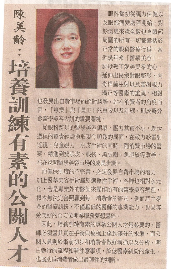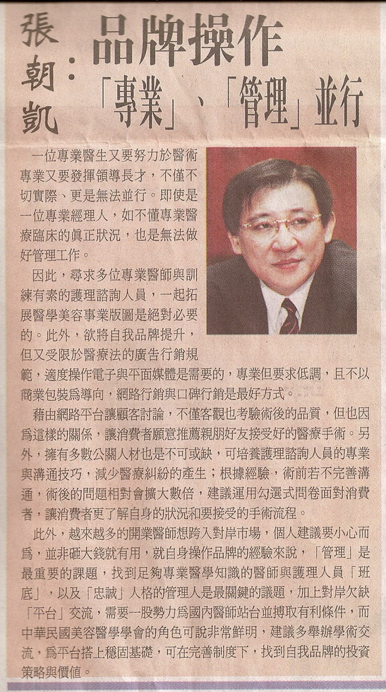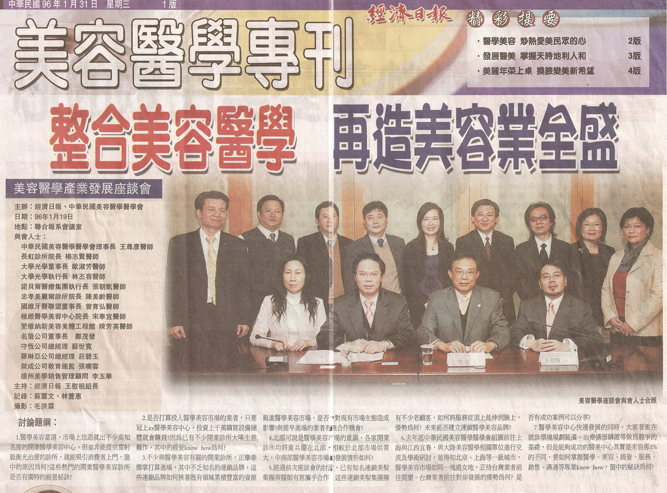 2007年元月19日張醫師參加聯合時報系經濟日報及中華民國美容醫學醫學會主辦之美容醫學產業面面觀座談會