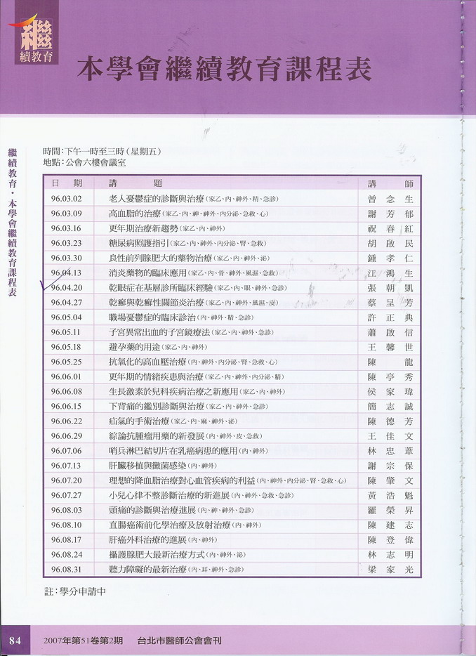 2007年4月20日張醫師受邀在台北市醫師公會繼續教育課程演講乾眼症在基層診所臨床經驗報告