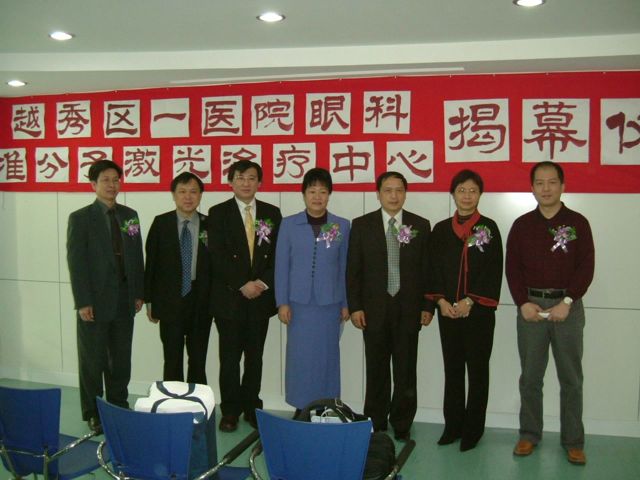 | 2004年3月參加廣州越秀區第一醫院眼科準分子激光治療中心開幕典禮 與廣州衛生局長合影(中) |
