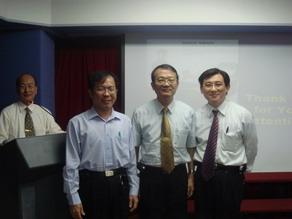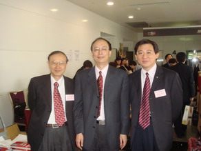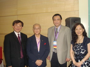 2007年元月下旬張醫師受邀在輔仁大學醫學院 20th 東亞醫學生會議EAMSC 開幕式致詞 並與長官及學者合影(圖左一為 輔大醫學系系主任周定遠教授 圖中立者 行政院衛生署專門委員 王炯琅醫師 )