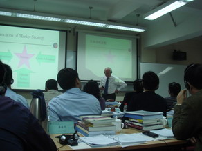 圖中為美國哥倫比亞大學洛桑管理學院James Mac Hulbert教授於第六模塊中上課講授市場營銷