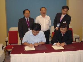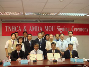 2007年10月4日台灣私立醫療院所協會TNHCA與亞洲醫師協會AMDA在萬芳醫院簽約儀式張醫師擔任合約見證人