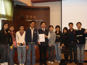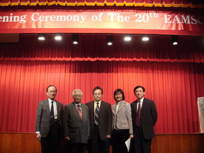 2007年元月30日諾貝爾醫學展望協會協辦在輔仁大學醫學院 舉行之 20th 東亞醫學生會議EAMSC 開幕式致詞 並與長官及學者合影 (圖左一為 輔大醫學系系主任周定遠教授 圖中立者 行政院衛生署專門委員 王炯琅醫師 )