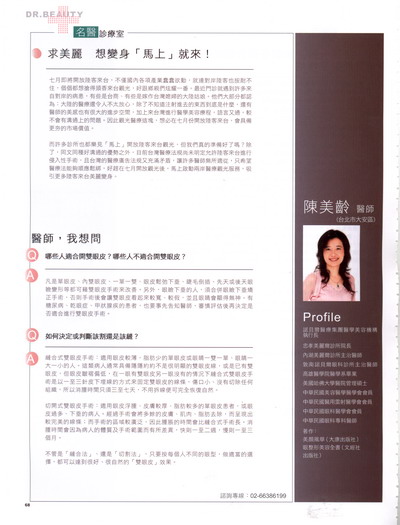 七月即將開放陸客來台,不僅國內各項產業蠢蠢欲動,就連對岸陸客也按耐不住,個個都想搶得頭香來台觀光,好跟鄉親們炫耀一番。最近門診就遇到許多來自對岸的病患,有些是台商、有些是嫁作台灣媳婦的大陸姑娘。他們大部分都認為:大陸的醫療還令人不太放心,除了不知道注射進去的東西到底是什麼,還有醫師的美感也有很大的進步空間,加上來台灣進行醫學美容療程,語言又通,較不會有溝通上的問題。因此觀光醫療這塊,想必在七月份開放陸客來台,會具備更夯的市場價值。