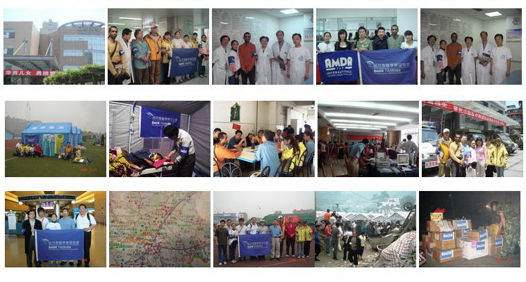2008年5月16日到23日 諾貝爾醫學展望協會(AMDA TAIWAN)與台灣私立醫療院所協會協會派醫療團隊前往中國四川賑災