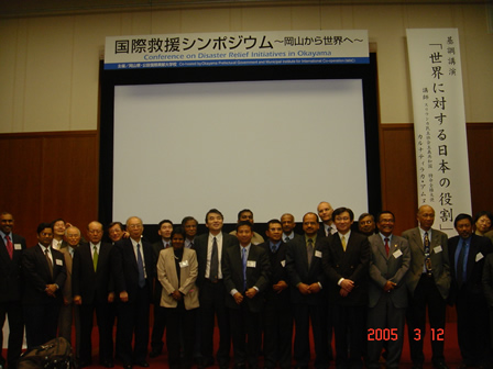 張朝凱醫師 ( 右六 ) 於 2005 年 3 月上旬 前往日本岡山市舉辦之國際急難救助研討會。