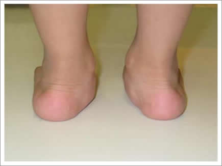 ▲小朋友站立時足部內側突出、足弓扁平塌陷、雙腳呈外八型。