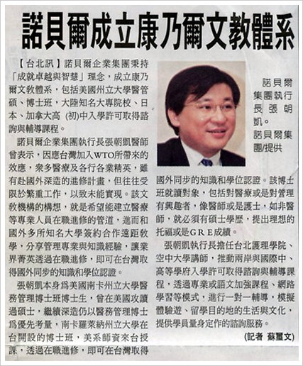諾貝爾集團 > 諾貝爾醫療事業 > 諾貝爾眼科雷射機構 > 平面媒體報導 > 經濟日報 - 諾貝爾成立康乃爾文教體系